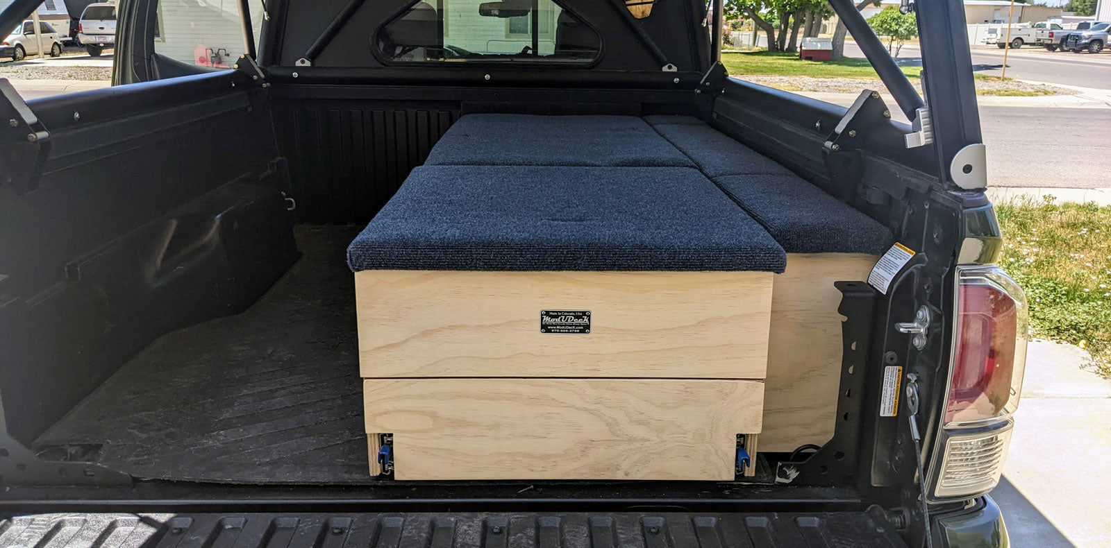 Thru trial and error, and a lot of field use, we continually fine-tune how ModUDecK’s are designed & built around form, function, durability. Many ideas come directly from our customers. Bin height, drawer length, carpet color, options, all at the discretion of the customer. If it fits your bed, we will build it!