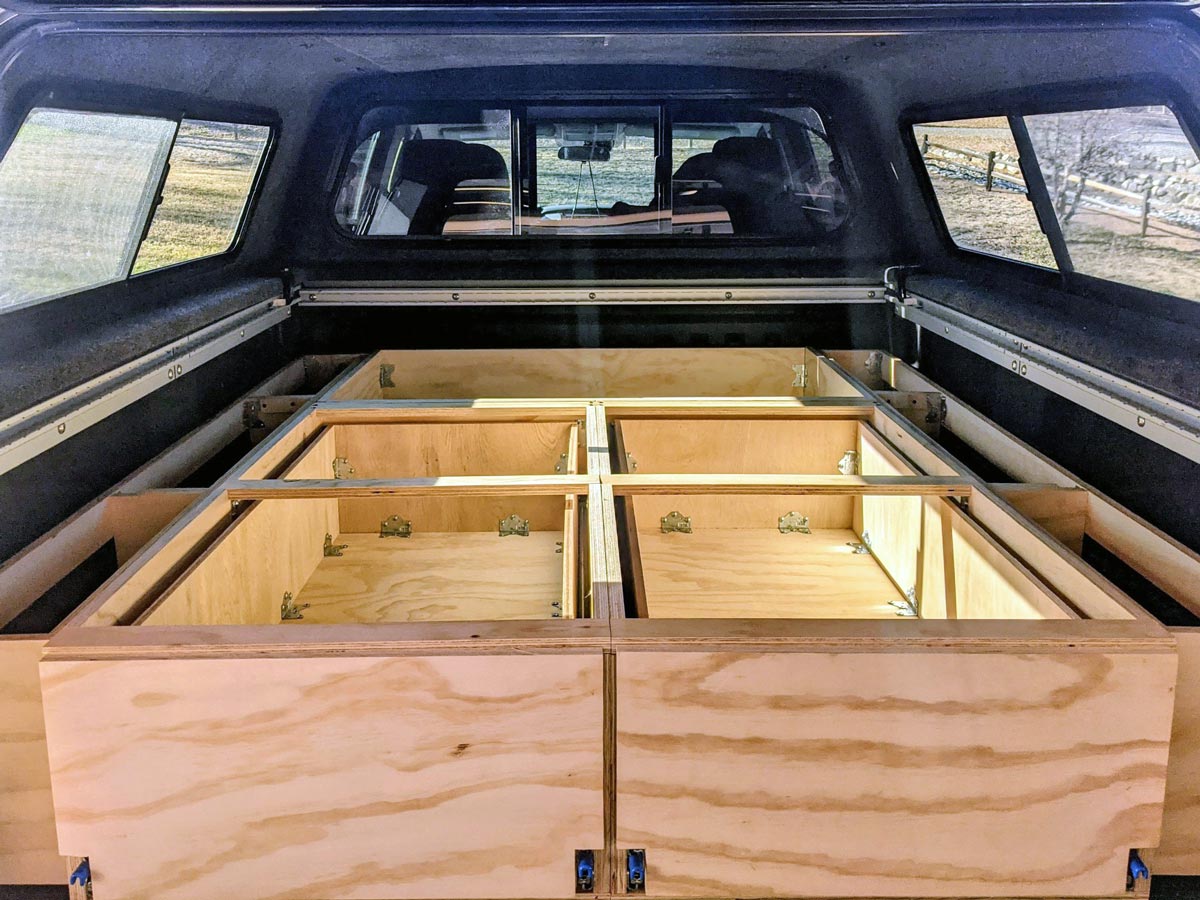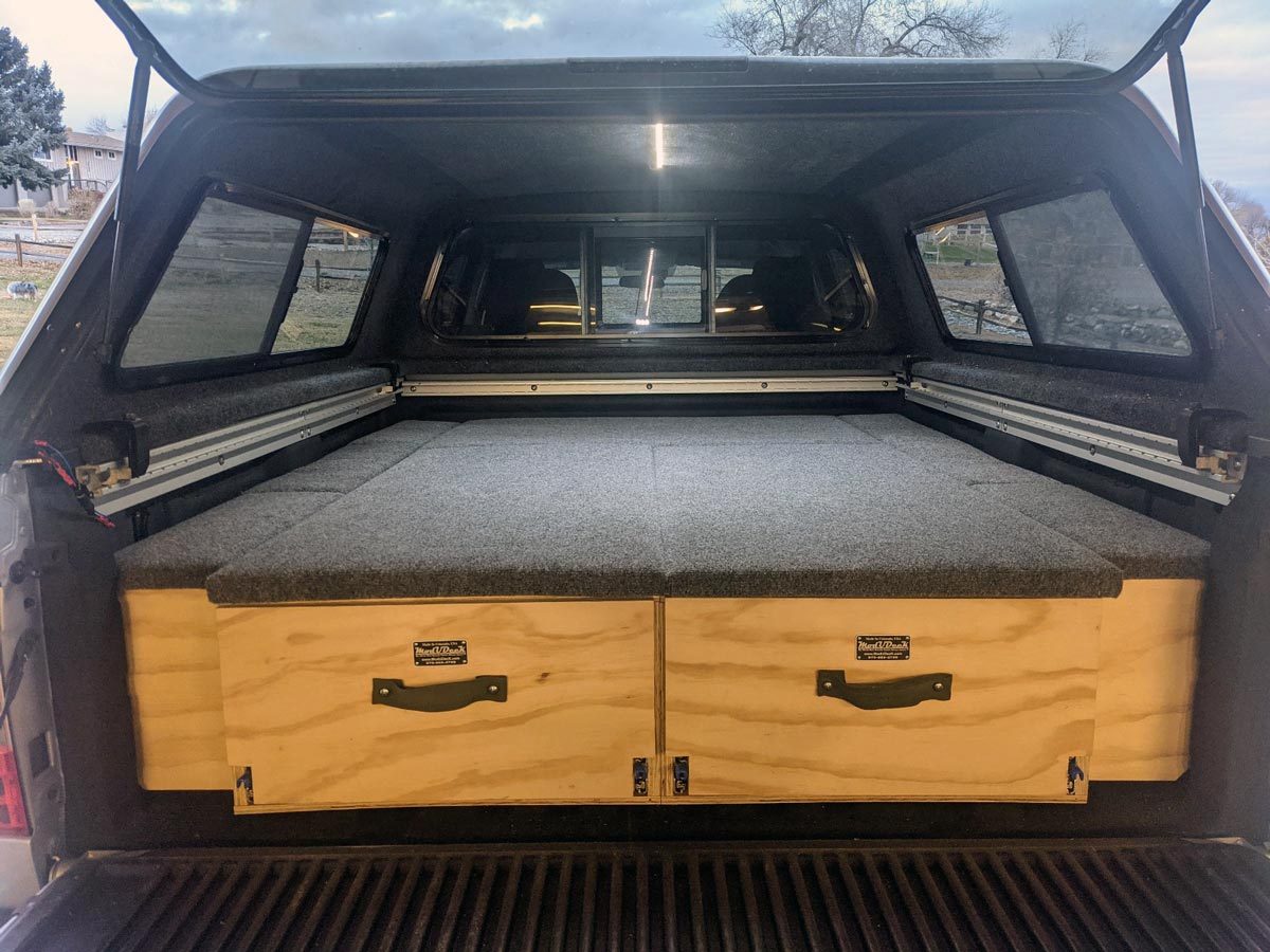One of our most popular designs as it includes full coverages for sleeping as well as two tailgate facing drawers, plus a large cab end bin for larger items. Starts at: $1,500.00